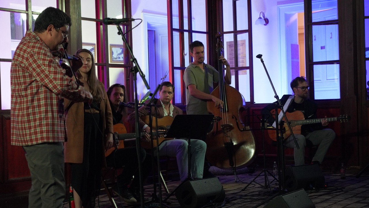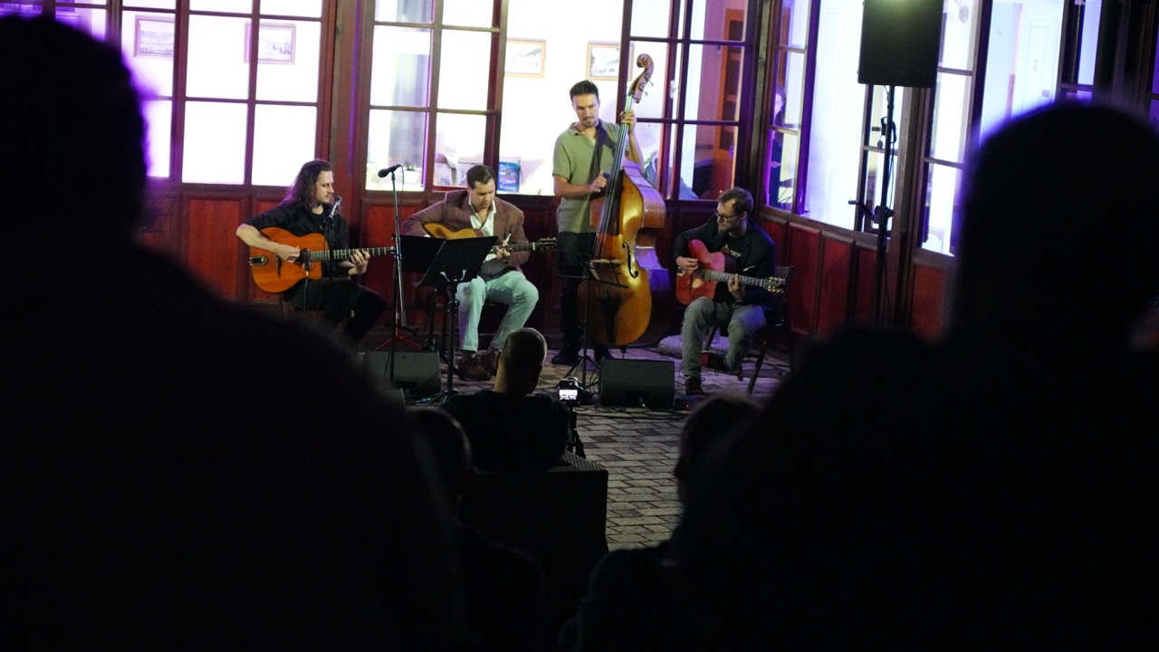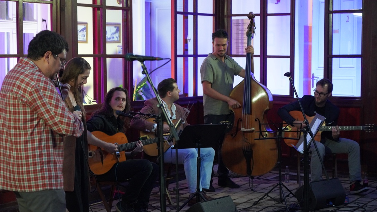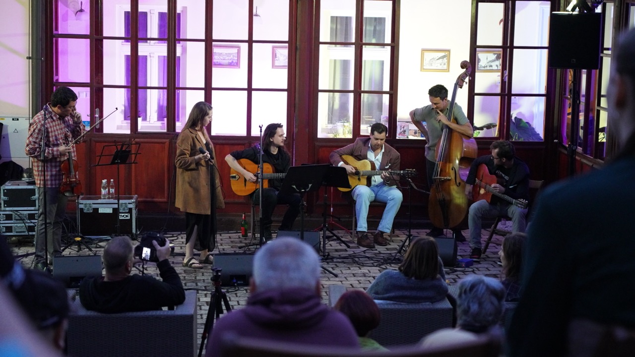 A név „jogviszonya” ellenére nagyon jó hangulatú koncertet adtak a szép számú közönségnek. Az „állandó tagok” között volt Gardenö Klaudia (ének), Gyurkač Patrick – Gyuri (nagybőgő) és Koša Peter (hegedű), akiket az idén visszatérő akadémikus gitárosok egészítettek ki, akik most még egy plusz taggal bővültek. Így egy igazi nemzetközi felállást láthattunk, hiszen lendvai, felvidéki, szlovén és ukrán zenészek közösen játszottak egy 90 perces, dallamokban gazdag, igazi gypsy swing és jazz koncertet.