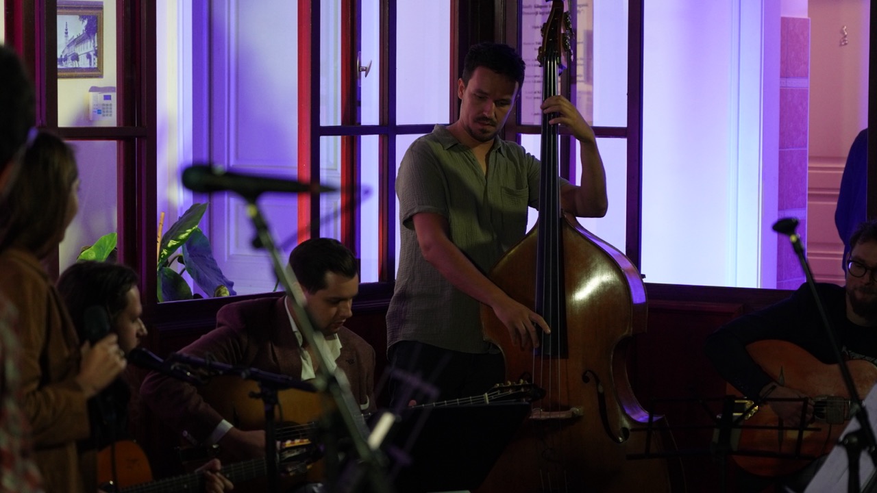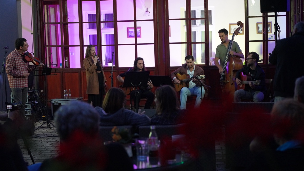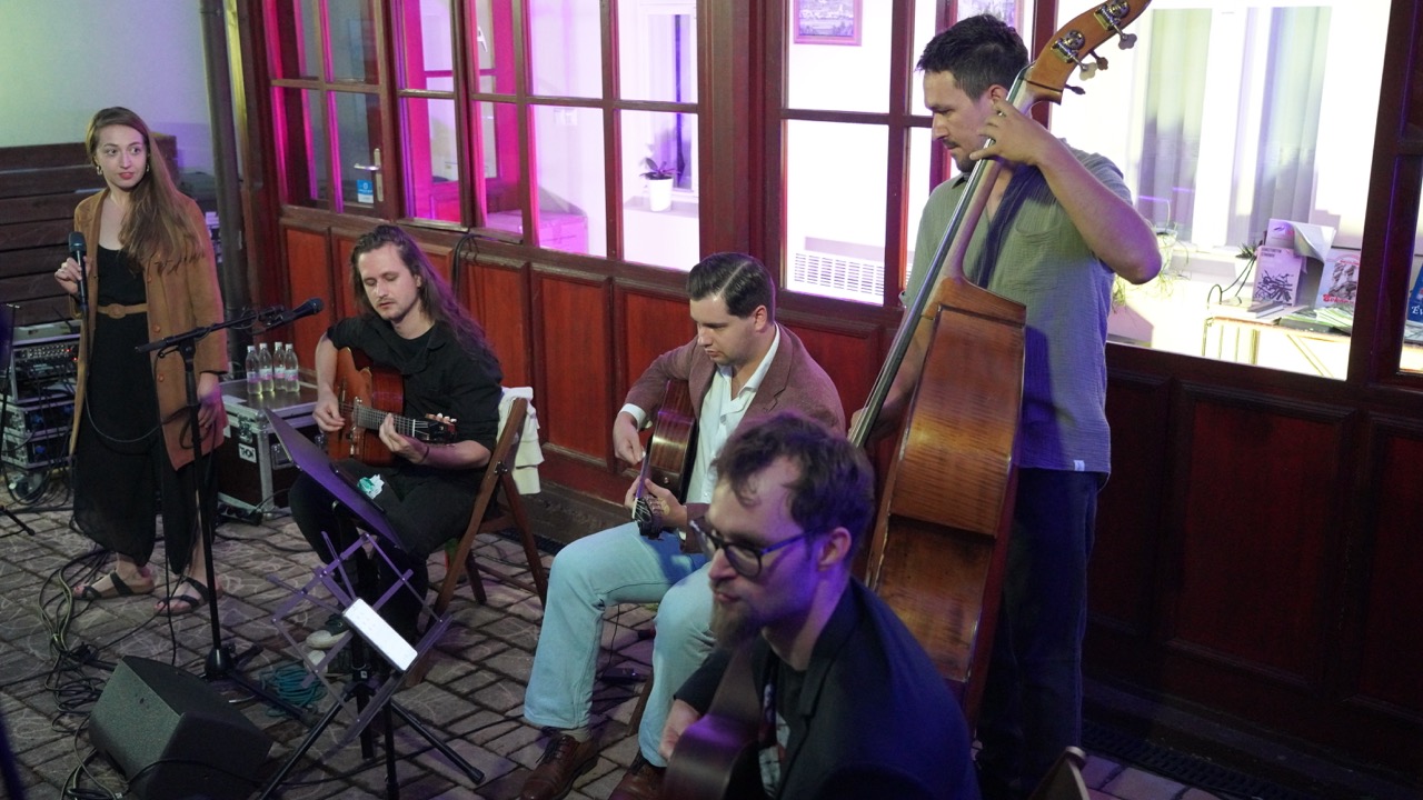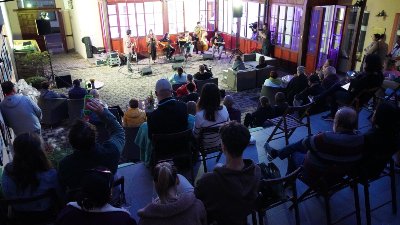 A név „jogviszonya” ellenére nagyon jó hangulatú koncertet adtak a szép számú közönségnek. Az „állandó tagok” között volt Gardenö Klaudia (ének), Gyurkač Patrick – Gyuri (nagybőgő) és Koša Peter (hegedű), akiket az idén visszatérő akadémikus gitárosok egészítettek ki, akik most még egy plusz taggal bővültek. Így egy igazi nemzetközi felállást láthattunk, hiszen lendvai, felvidéki, szlovén és ukrán zenészek közösen játszottak egy 90 perces, dallamokban gazdag, igazi gypsy swing és jazz koncertet.