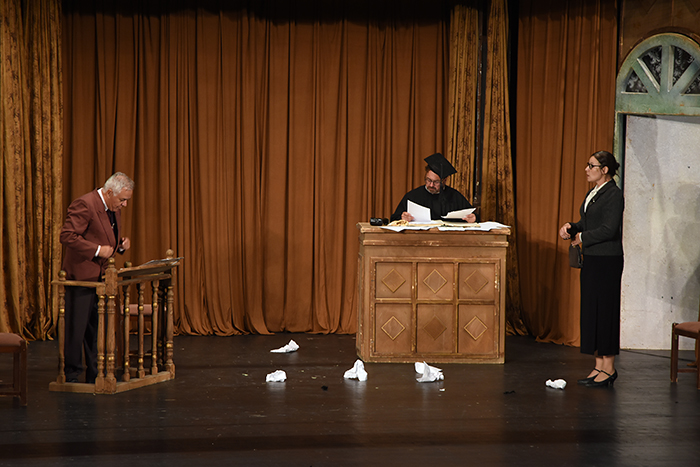 Az élő zenekaros előadásban dr. Sáfrány ügyvéd, akit Straub Dezső, Jászai Mari-díjas színész alakít, bemutatta a lendvai közönségnek irodájának mozgalmas életét. Az este folyamán számos jogi ügy került terítékre, beleértve a válópereket, békítőpereket és apasági kereseteket is, amelyek mind a házassági élet kihívásaiból fakadtak. A kétfelvonásos darab során nemcsak az ügyfelek, hanem a főszereplők élete is izgalmasan formálódott. Az előadás végén a születésnapját ünneplő Bodrogi Attila, aki Kulhanek elnök szerepét játszotta, a színésztársai és a közönség közreműködésével kapott gratulációt.