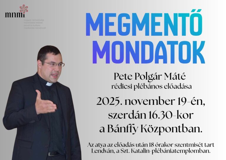 Ennek érdekében Pete Polgár Máté rédicsi plébános előadást tart a Bánffy Központban Megmentő Mondatok címmel.