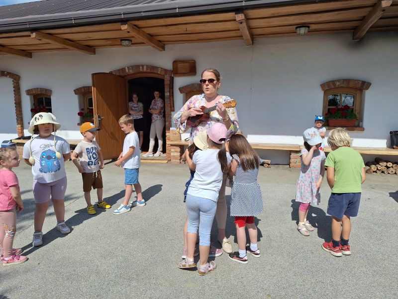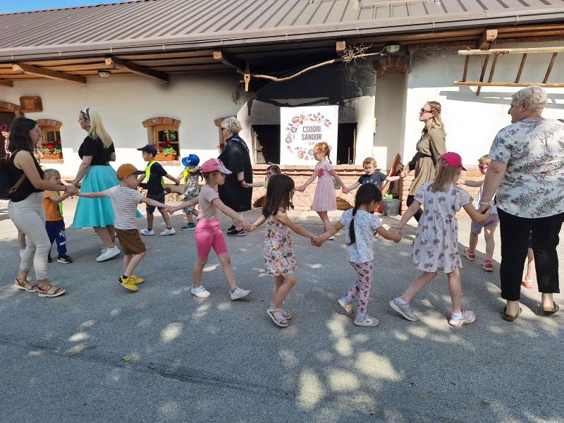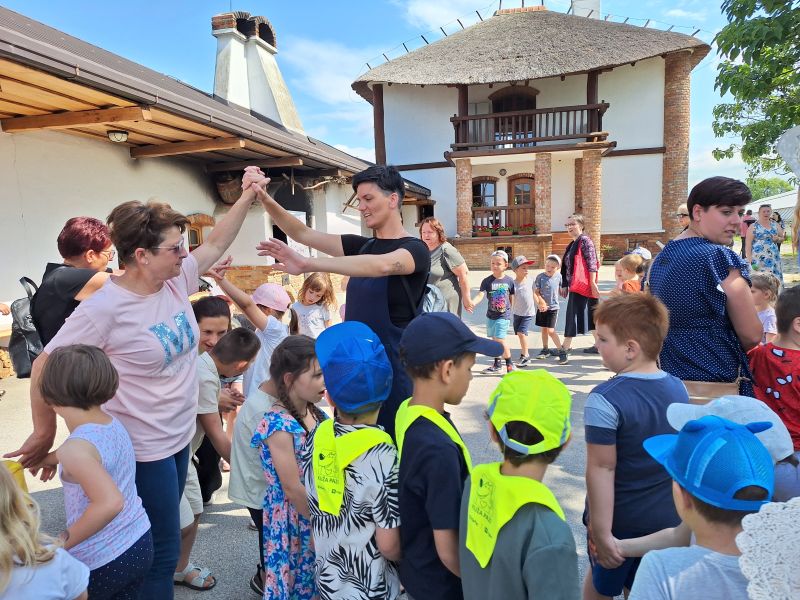 A látogatás egy vidám hangulatú táncbemutatóval kezdődött, melyet Szakos Lilla vezetésével egy közös táncház követett. Ezt követően Andrejek Judittal énekeltek együtt a gyerekek, majd bejárták a gazdaság területét. Testközelből láthatták az ott élő állatokat, megismerkedhettek az állattartás alapjaival, és megcsodálhatták a különféle növényeket, köztük gyógy- és fűszernövényeket is.
