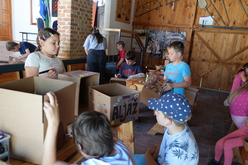 A tábor ismerkedési és csapatépítő játékokkal kezdődött. Játszottunk, ismerkedtünk és megtanultuk egymás nevét. Minden gyermeknek adtunk egy dobozt, amelyekre felírták a nevüket, kidíszítették, befestették, majd összegyűjtötték ezekbe a héten készített tárgyaikat, amelyet pénteken, a tábor utolsó napján hazavittek. A kézműves foglalkozások során készítettek csuhéból virágot, hímeztek és kosarat is fontak. A gyermekek kipróbálták a fafaragást, valamint fumut is sütöttek a kézműves mester segítségével és utasításai alapján. Képet készítettek gyapjúból nemeztechnikával, megismerkedtek a textilszobrászattal, mandalát festettek és fonaljátékok segítségével karkötők készültek.