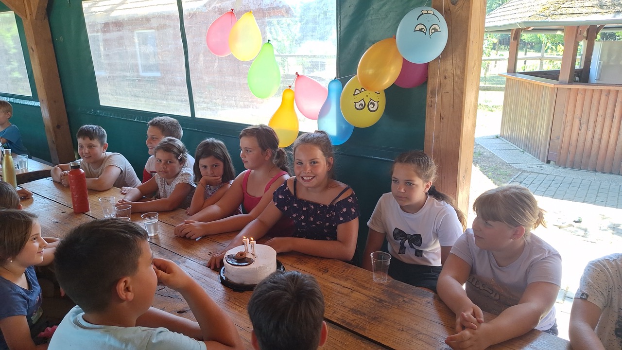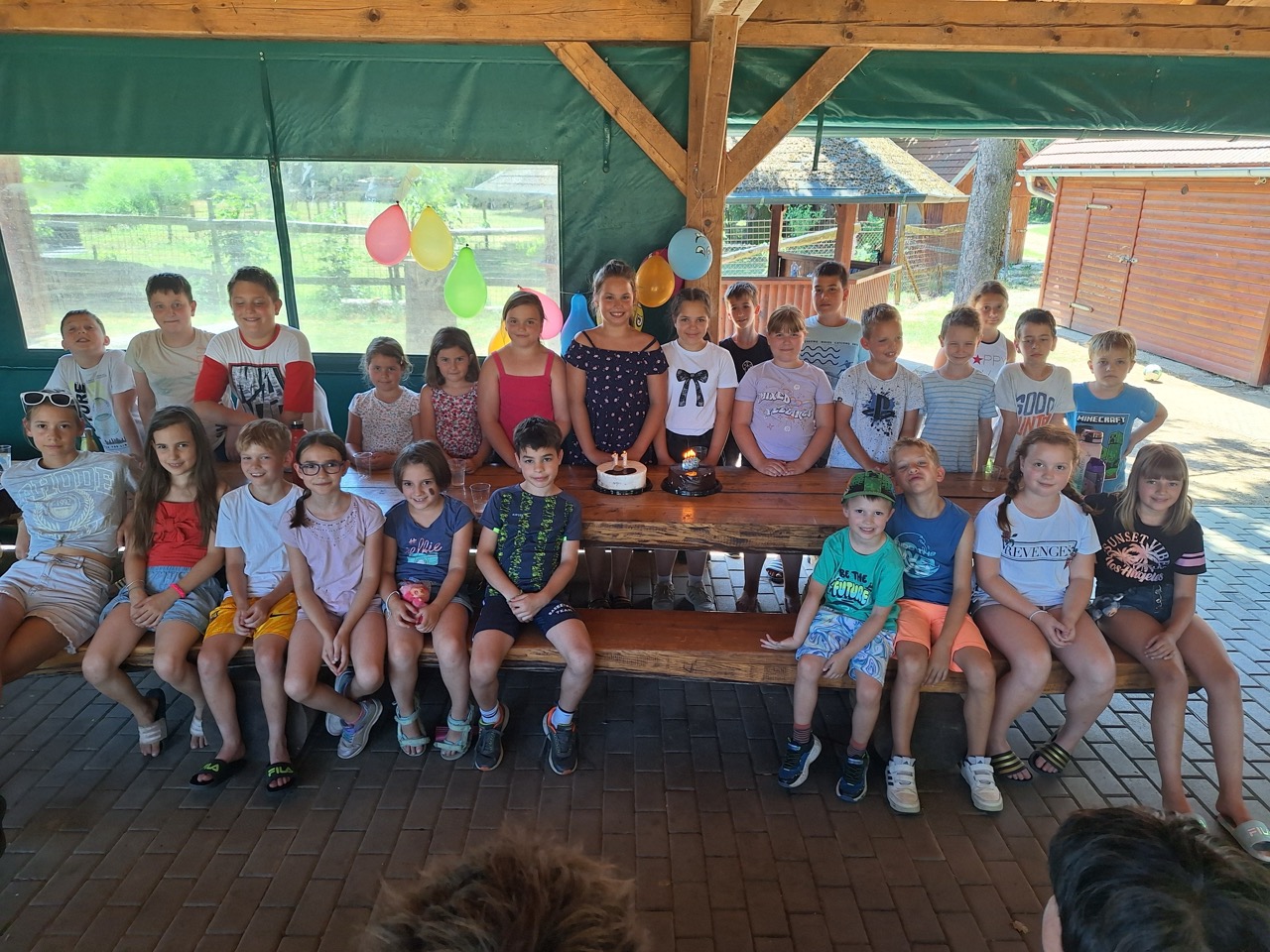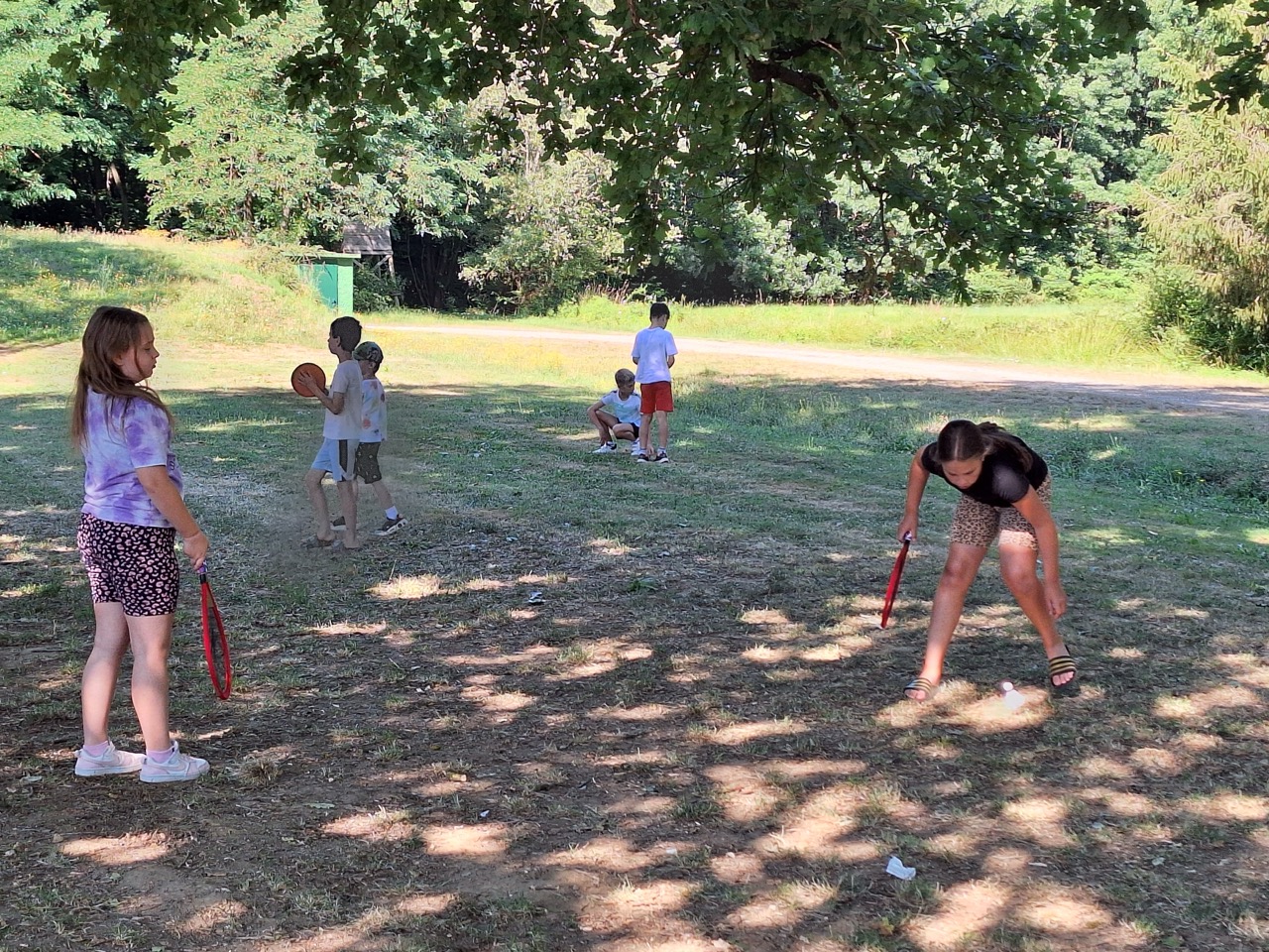 Domonkosfán szintén mozgalmas volt a tábor, ahol 23 gyerek vett részt. A sok játék mellett ők is különféle kézműves technikákkal ismerkedtek meg: csuhéztak, vesszőt fontak, újraalkották híres festmények élő bemutatását, amit nagyon élveztek, és részt vettek elsősegély tanfolyamon is. Emelet a tábor ideje alatt oldtimer autók is meglátogatták a Domonkosfai Portát, amelynek a fiatalok is igen megörültek.