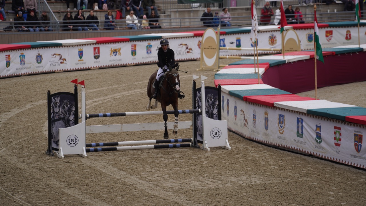 A délutáni döntőben így Gomboc Lea Dobronakot képviselve lépet pályára és sokáig jól is mutatótt a számára, hiszen a harmadik helyen lovagolt, de sajnos leesett a lováról így végeredményben a 4. helyen zárta a Kis Huszárok mezőnyében.