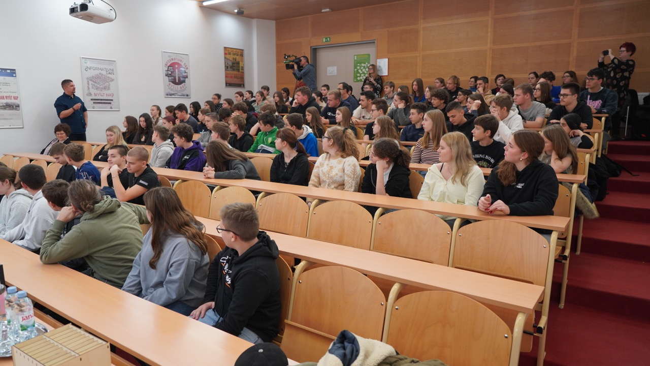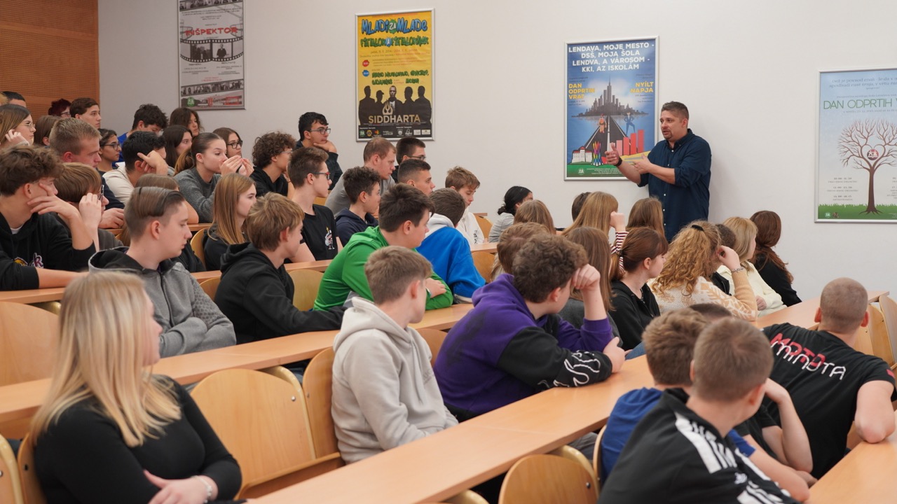 V ponedeljek dopoldne je pesnik obiskal Dvojezično srednjo šolo Lendava, kjer so se srednješolcem pridružili tudi učenci višjih razredov dvojezičnih osnovnih šol, ki so sodelovali v programu z naslovom „Lélek vagyok, élni szeretnék!” (Duša sem, živeti želim!). Udeleženci so lahko spremljali nenavadno literarno uro o zadnjih mesecih pesnika Miklósa Radnótija. Radnóti je pred osemdesetimi leti umrl kot žrtev druge svetovne vojne, zato je bil letos na tekmovanju v recitiranju madűarskih pesmi obvezni pesnik za srednješolce in učence višjih razredov. Obiskovalci so spoznali strašljivo, a hkrati upanje polno pot pesnika.