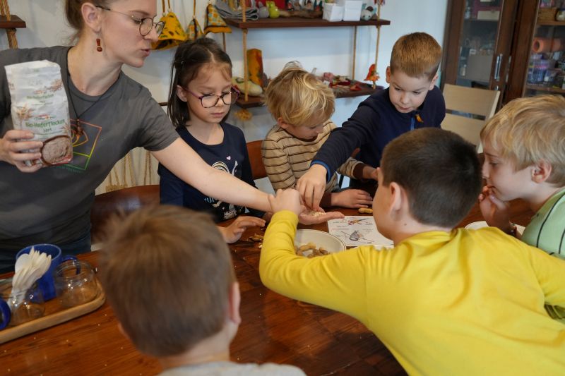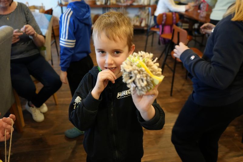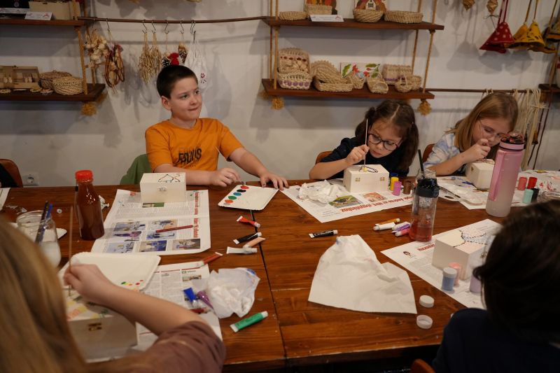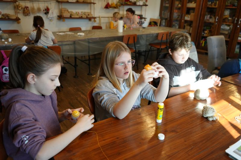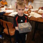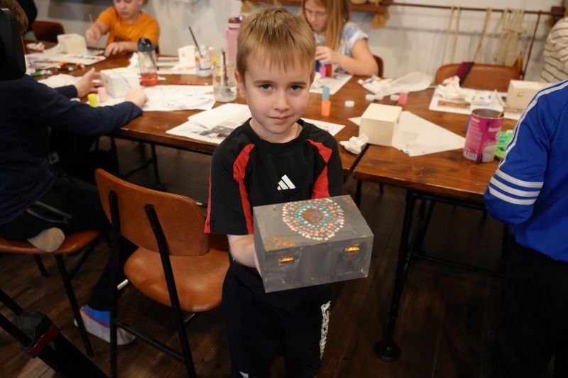 Dopoldanske urice naslednjega dne so bile namenjene likovni umetnosti. Delavnico je vodila Klaudia Abraham, otroci pa so s pisanimi pikicami okraševali lesene škatlice. Tako so nastali zanimivi in unikatni izdelki – prave skrinjice z zakladom. Popoldan, pred odhodom domov, pa je še vsak izdelal svojega ježka iz volne.