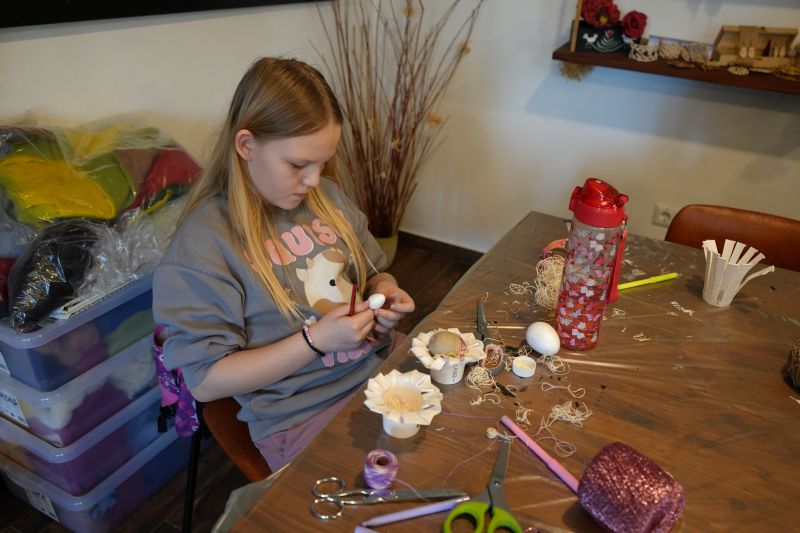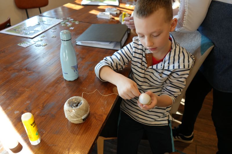 Tretji, zadnji dan tabora, je bil že v velikonočnem vzdušju. Otroci so se preizkusili v barvanju jajčk ter na podlagi tradicionalnih dobrovniških vzorcev okraševanja pirhov ustvarili edinstvene izdelke. In ker so pirhi zelo krhki (tudi tisti iz stiropora), so zanje izdelali še posodico – kozarček v obliki zajčka. Nekateri med njimi so se lotili tudi nekoliko zahtevnejšega načina okraševanja, in sicer s prejico ali vrvjo, ki so jo z zelo natančnim in potrpežljivim delom ovili in zalepili na jajce.